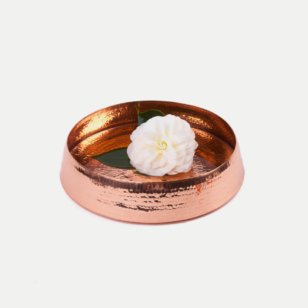 These copper products are made by Indian craftspeople, melding ancient traditions and modern design. This cooperative reflects the legacy of a 400-year old metal craft. It is the outcome of a creative collaboration to evolve a contemporary range of copper products that cater to the present, while retaining the heritage craft process. They bring dignity and efficiency to this ancient craft by linking talented designers to craftspeople and presenting their craft to the world.